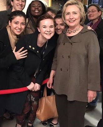 Volunteering for campaigns is not as easy as it sounds. There are two different kinds of volunteering and that is making phone calls and canvassing. At Hillary’s headquarters in Manchester, there were about 10 of us who volunteered to make calls on Tuesday night. When you make phone calls you sit in a room with a bunch of other volunteers and campaign staffers and you have a list of residents in the area who are registered voters. The goal is to call them, ask who they are supporting in the primary, and depending on the response, you either try to sell them on a particular candidate or let them go if they are for sure not going to vote for your candidate. -Samantha Lewis (pictured above with Secretary Clinton)